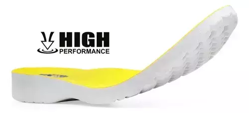 • Seu grande diferencial é a palmilha High Performance que traz ultra conforto e formato anatômico. Por conta disso, o peito do pé é mais alto, para que a palmilha fique confortável e encaixe perfeitamente. Outro detalhe é o corte para ergonomia a flexibilidade.