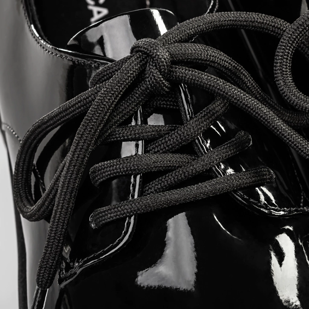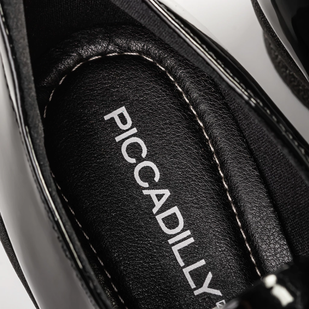 Sapato social feminino de cadarço preto brilhoso da Piccadilly.