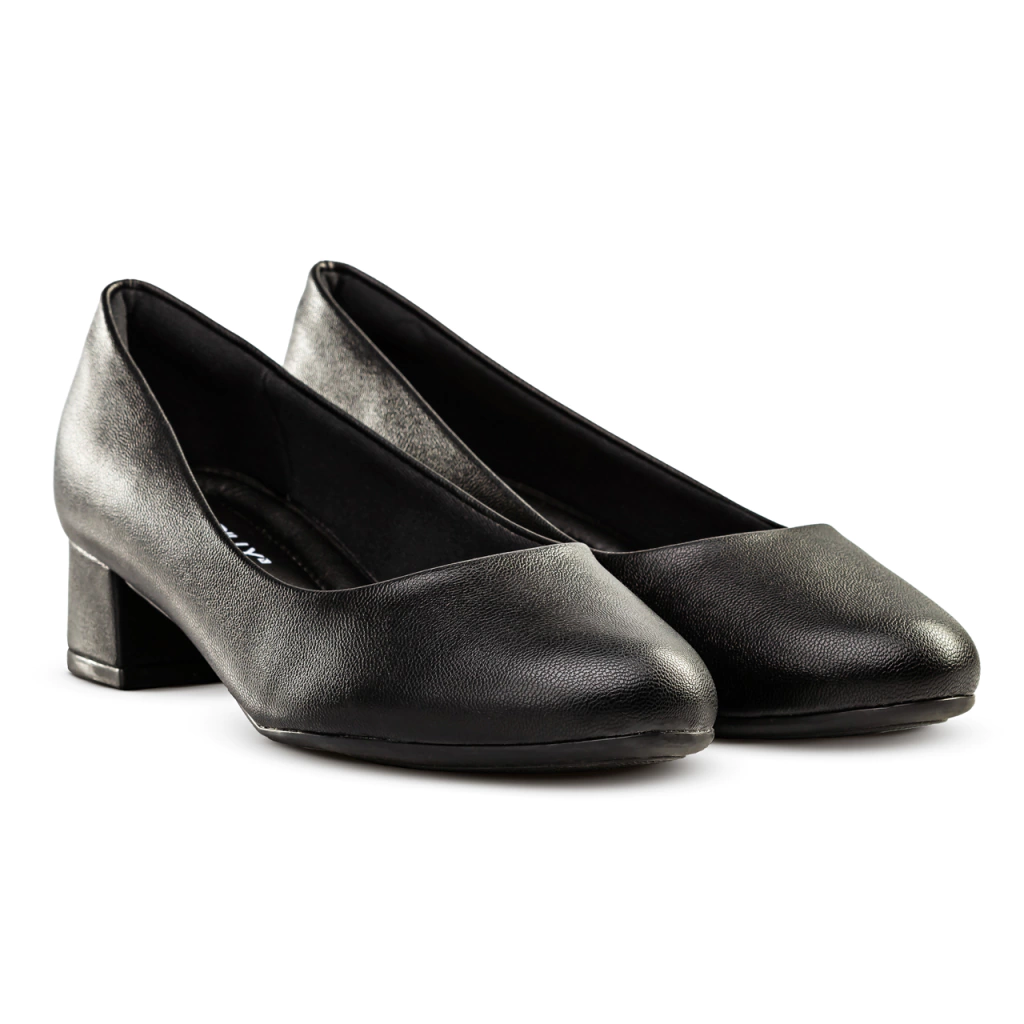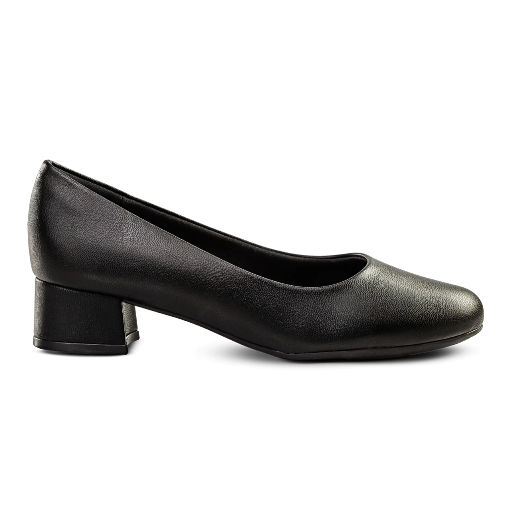 Sapato feminino tipo scarpin preto fosco com salto de 3cm da Piccadilly.