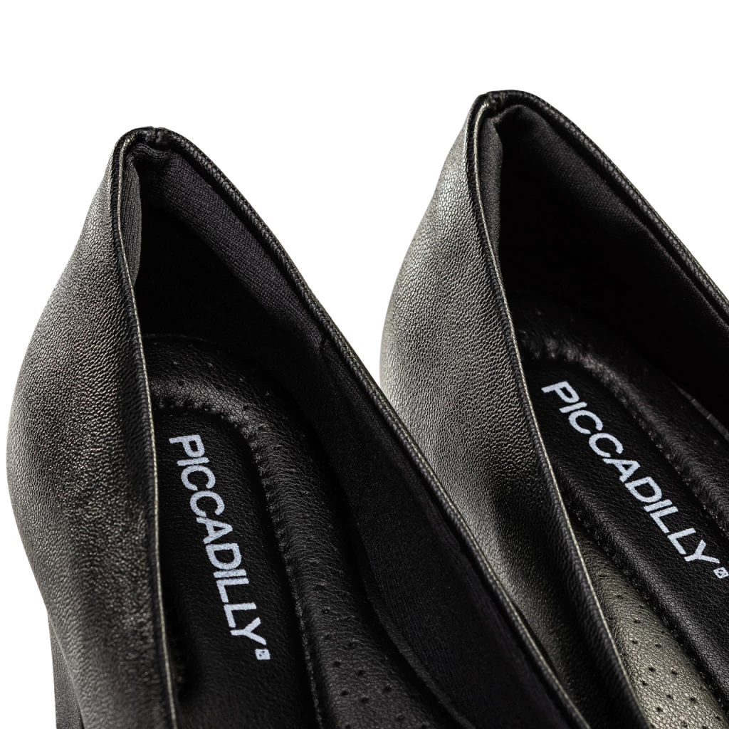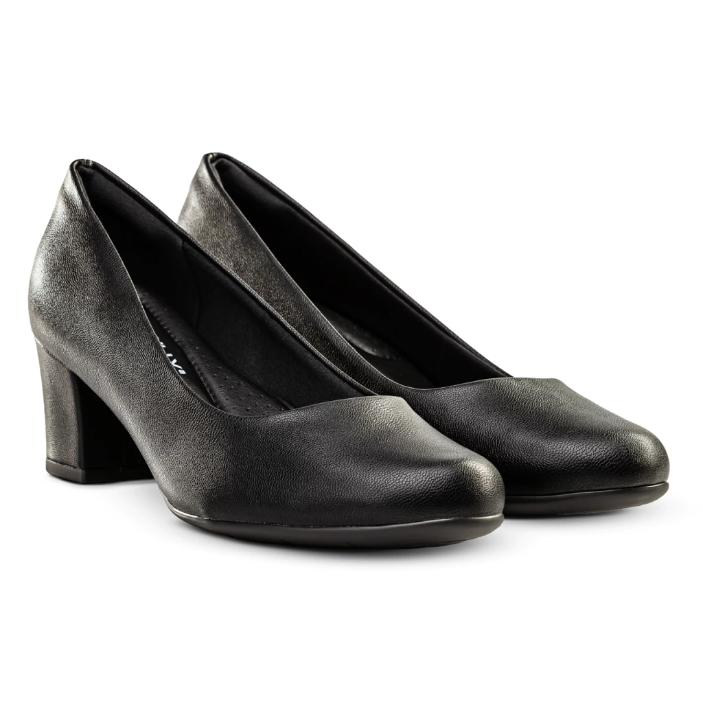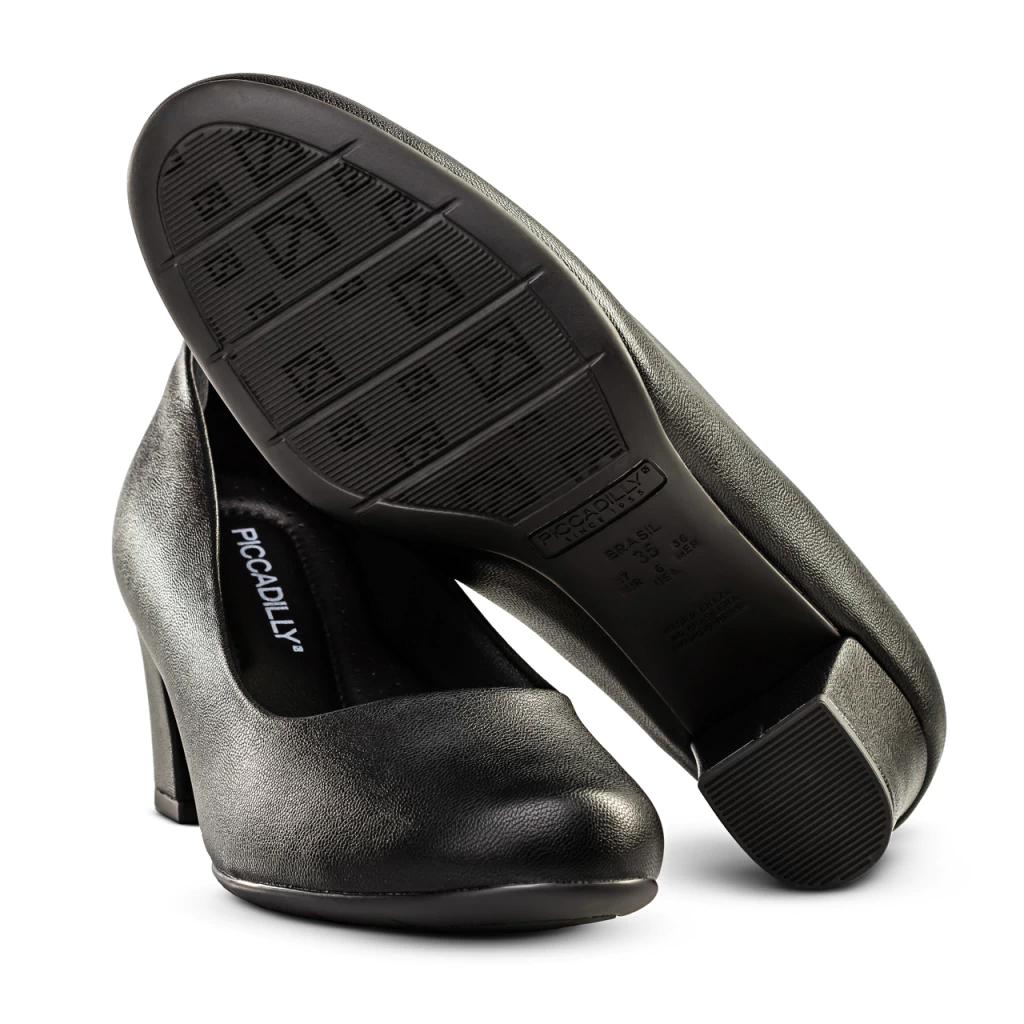 Sapato feminino tipo scarpin preto fosco com salto de 5cm da Piccadilly.